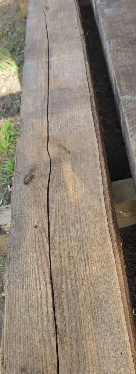 Added September 29, 2025.8”x 9” x 13’, clear-4-sides, chestnut beam with fabulous 100-year-old patina. Salvaged from the 250-year-old Shamrock Mills grain mill in Paxinos, PA. Great original surface and ghosts from nails and hardware. No notches. Can be burnished and waxed to bring out the original patina and give depth and more character. Look at the buffed and waxed joist for an idea of what finishing can look like. Salvaged from the 250-year-old Shamrock Mills grain mill in Paxinos, PA. Great original surface and ghosts from nails and hardware.