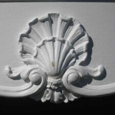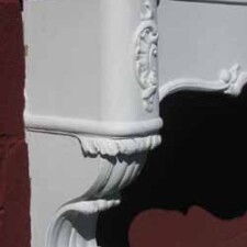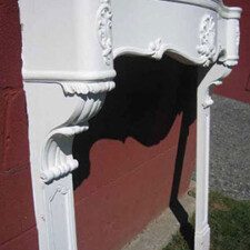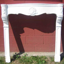 Small, carved, poplar mantel. Carvings all appear to be out of solid wood, not applied. Probably only 50+/- years old. Has a small chunk missing on lower right side.