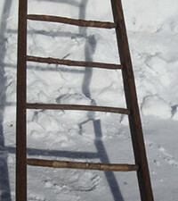Nice, primitive split rail ladder with Birch branch rungs. Rungs are loose so ladder pivots right and left. Great for decoration on a wall or ceiling and to hang things off of. Not for functional use! Measures ~22” wide x 9’ tall x 3&1/2” deep.