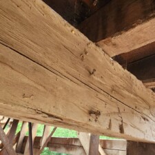 Two matching, hand hewn, Northern Red Pine, 43’x 12”x12’ tie beams from original 1770 mill. They’d make fantastic great room focal pieces with historical significance. Beams are each from a single tree. Over 500 bf of wood in each.