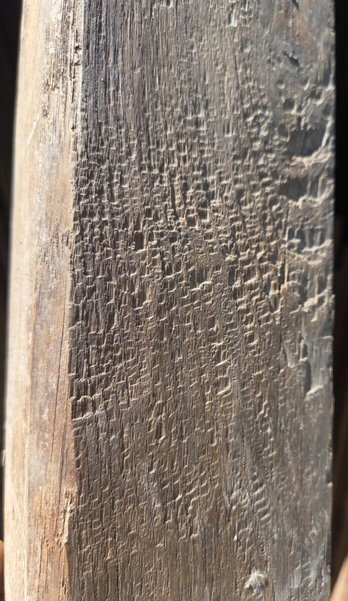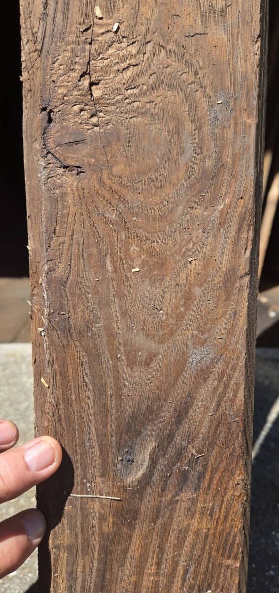 Added September 29, 2025.Two matching chestnut posts that flanked an area in the PA Grain Mill. Great patina, hand-planing and two chamfered edges on wider front side. Perfect for a headboard or to flank an area just as-is. They measure 7’11” tall x 4.75” wide x 3.75” deep. The wide face has chamfered edges and hand-planing on 3-sides. Back side is rough sawn. Hand made with wonderful character and patina. Look at the buffed and waxed joist for an idea of what finishing can look like.