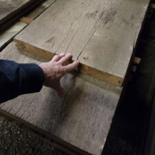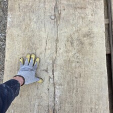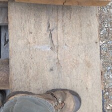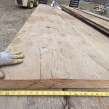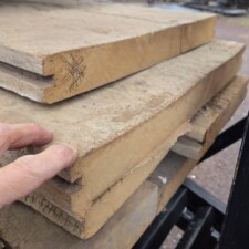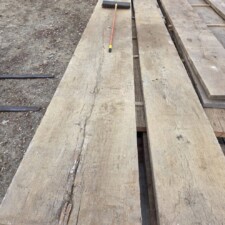 Added November 22, 2025.475sf of extremely wide and thick oak threshing floor. This is another rare find from PA because of its width and condition. All the planks are from the same barn which was salvaged about 30 years ago and found correctly stored in a dry barn last month. Some of the wider planks weigh up to 400 lbs each. About 40% of the material is ~2.5” thick and the rest is ~2” thick. A ½” plywood layer can be used to raise the 2” material. Widths range from ~12” to 24”+ (with more than half the boards being 16”+) and lengths of ~12’ to 17’+ (+ a few shorts). This will be an incredible looking floor if prepared and installed correctly. As with all my original antique material, boards may need to be washed, buffed, trimmed, repaired (patching holes, dealing with areas damaged by water leaks, etc.), carefully puzzled together and installed to create a floor that suits your needs.