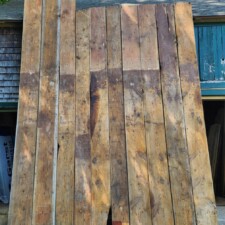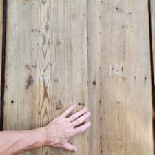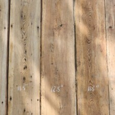 Added June 8, 2024.590sf of long, wide and thick, hand planed and foot worn 18C Red Pine flooring from South Windsor, CT and a similar thickness batch from MA. The flooring is a proud 1”+/- and very heavy and dense. The flooring should be sanded and buffed to bring out the great Red Pine colors. Widths of 7” to 15” and most length of 12’ to 17’ with a few shorts and extra material for patching. As with all my floors, boards will need to be edged and trimmed before installation. One picture shows a board lightly sanded and half of the area oiled.